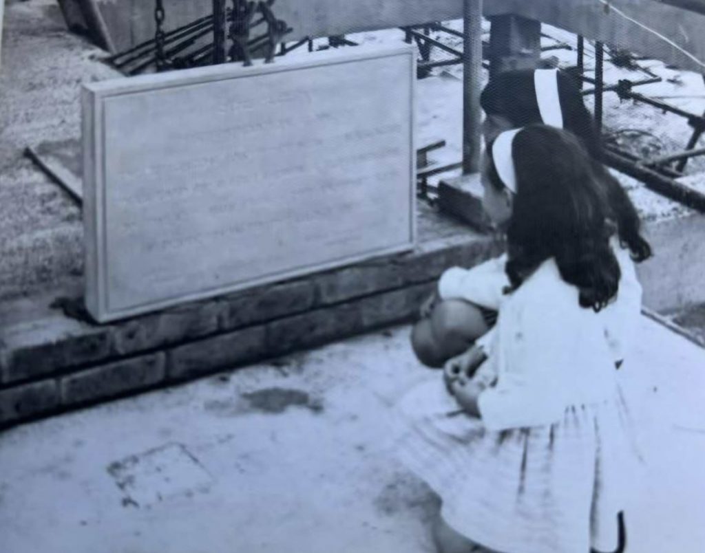 Two little girls, Cindy and Juliet Dicks, reading the inscription on the Foundation Stone of The Brighton and Hove Reform Synagogue, circa 1966. Cindy went on to marry Rabbi Dr Jeremy Collick, of Blessed Memory, and thus became the Rebbitzin. The photo shows Cindy nearest to the camera. I have posted this at the request of my very dear friend, Devorah Dicks, mother of Cindy and Juliet.